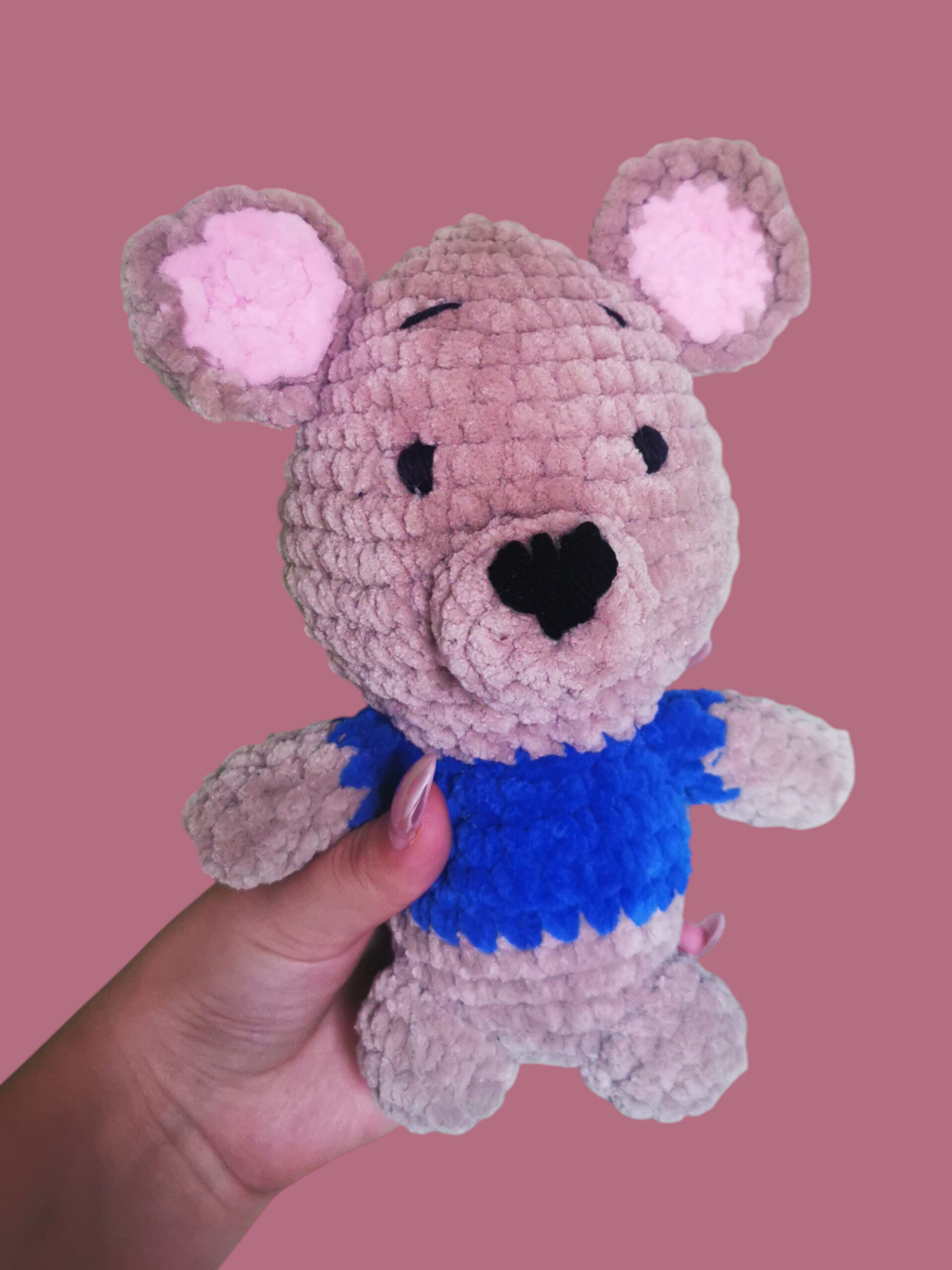 Ich wollte ihn so gestalten, wie ich ihn immer in Erinnerung hatte: klein, sitzend, mit diesem neugierigen Blick und der süßen Energie, die ihn in den Geschichten von Puuh und seinen Freunden so liebenswert macht. Jede Masche war wie ein kleines Wiedersehen mit der eigenen Kindheit vertraut, warm, heilsam.