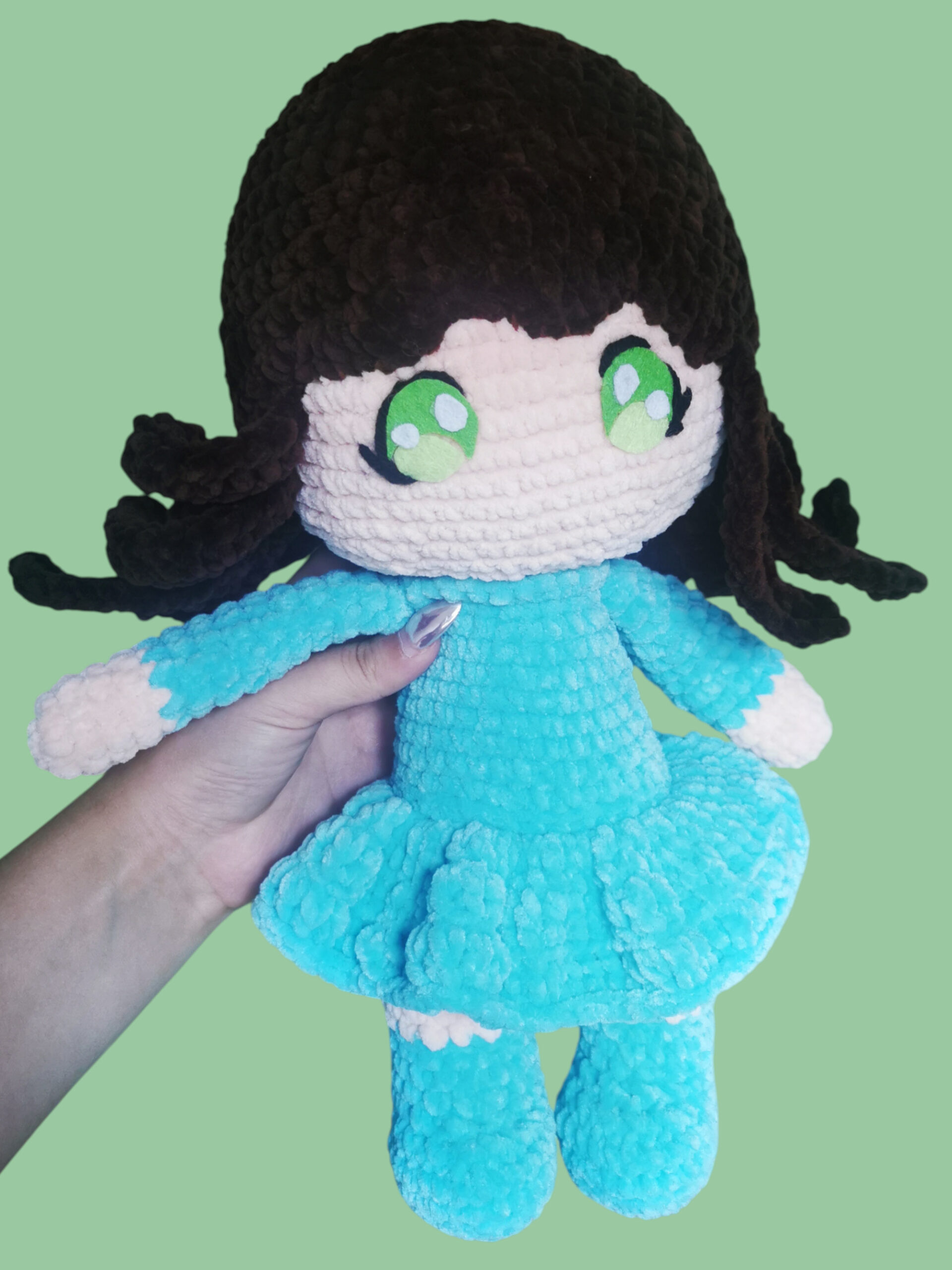 Ich habe diese Puppe mit großer Sorgfalt und viel Gefühl gehäkelt jede Locke, jede Masche, jede kleine Falte ihres Kleides wurde bewusst gesetzt.